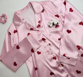 ست پیژامه کت شلوار ساتن استین بلند شلوار با مغزی قرمز
