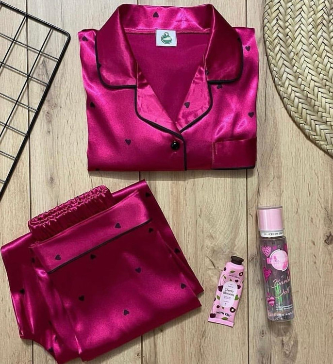 کت شلوار ساتن الیکس درجه ۱😍(استین بلند شلوار)