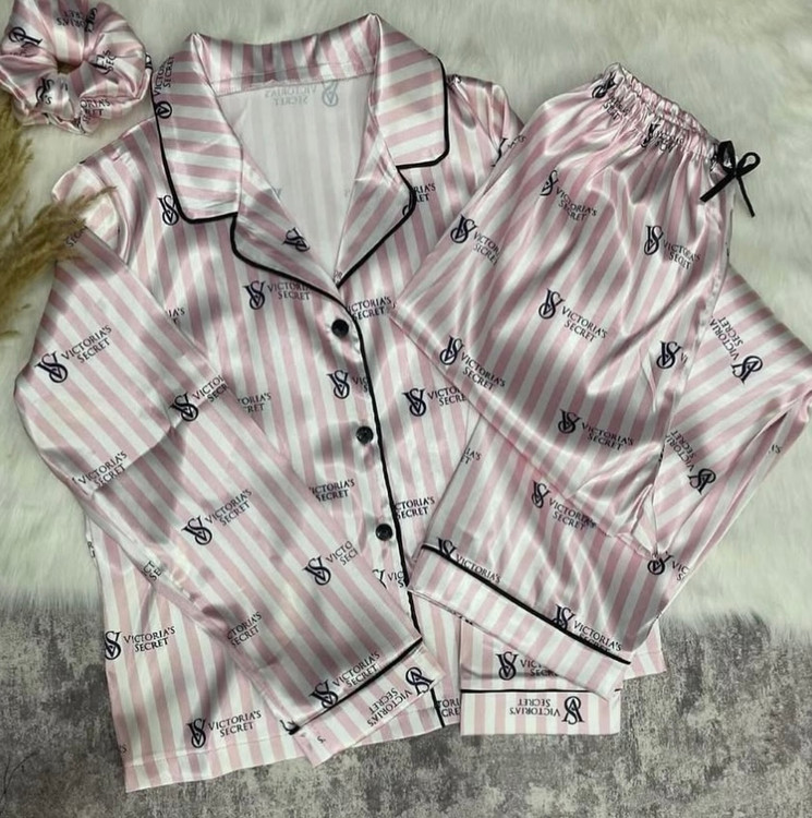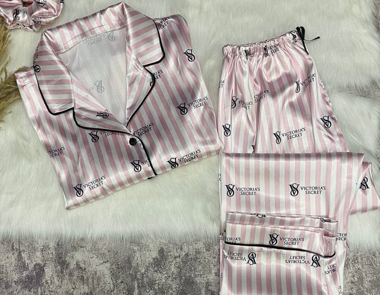 کت شلوار ساتن طرح ویکتوریا لوگو دار