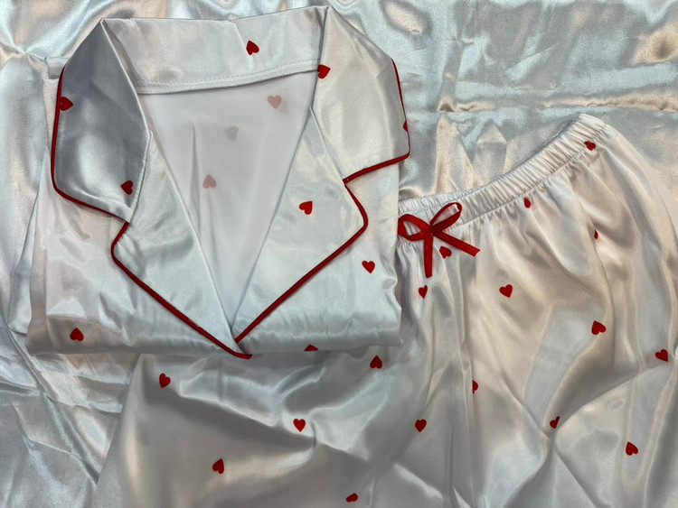 کت شلوار ساتن الیکس درجه ۱😍(استین بلند شلوار)