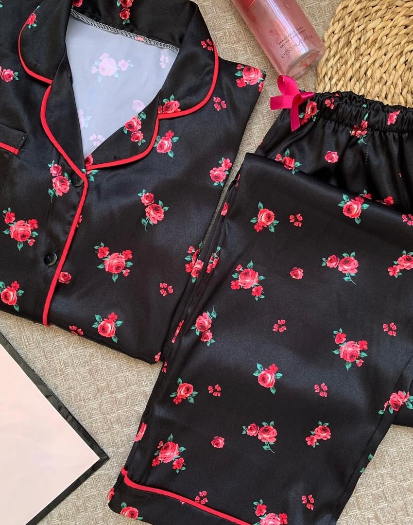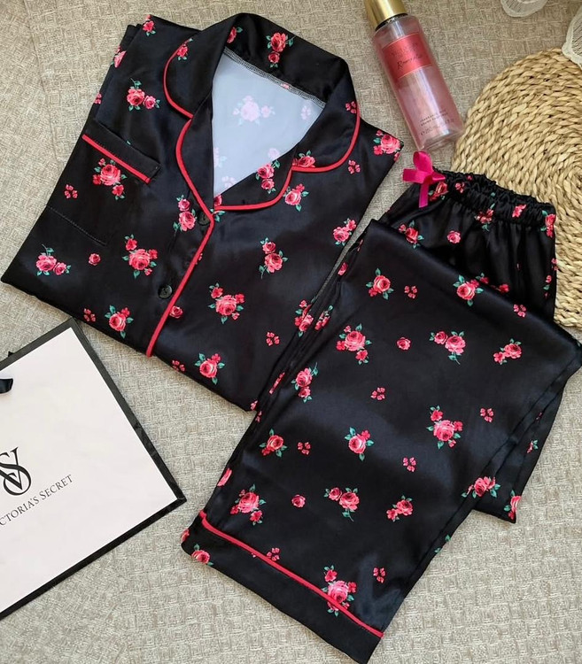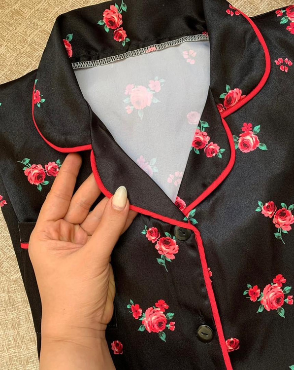 کت شلوار ساتن الیکس درجه ۱😍(استین بلند شلوار)