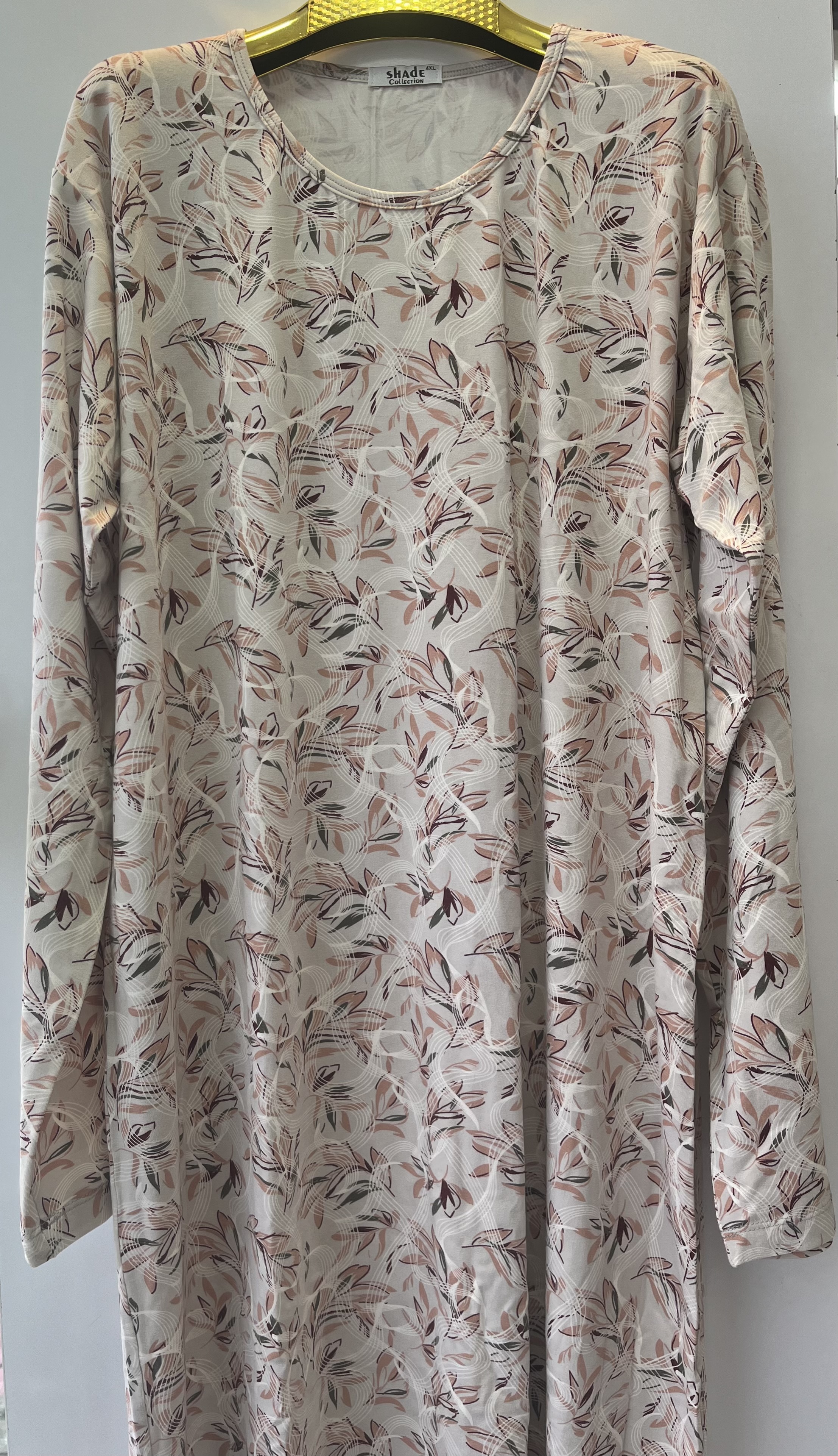 پارچه نخی ترک بسیار خنک و نرم ولخت با کشسانی بالا و کیفیت و دوخت عالی پیراهن استین بلند سایز ۴: مناسب تا سایز ۵۴ دور سینه بدون کشسانی حدودا ۱۲۰ قد تا پایین زانو حدودا ۱۰۰ تا ۱۰۵ بسته به سایز